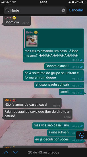 Até que a partir de uma brincadeira no grupo "criativos", Camilla e Victor, que até então não tinham avaliado a possibilidade de ser um casal, começaram a se questionar. E foi aí que o papo entre eles ganhou novos contornos e um direcionamento diferente, encontrando, em ambos, um sinal verde para que as coisas evoluíssem.